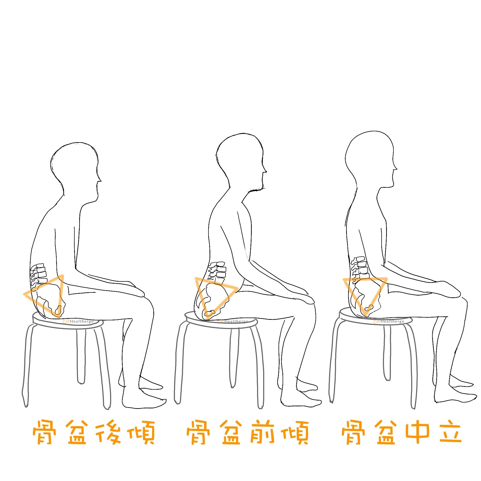 萬丈高樓平地起,要能夠坐理想坐姿,要先把地基蓋穩:要先找到骨盆在中立的姿勢(坐在坐骨上)。